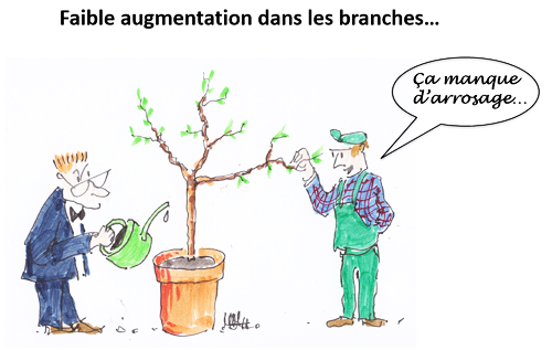 Un ralentissement du salaire mensuel de base dans plus de la moitié des branches : Le salaire mensuel de base est défini comme le salaire hors primes sauf pour les primes liées à la réduction du temps de travail, hors avantages en nature. C’est un salaire brut, avant toutes déductions de cotisations obligatoires.